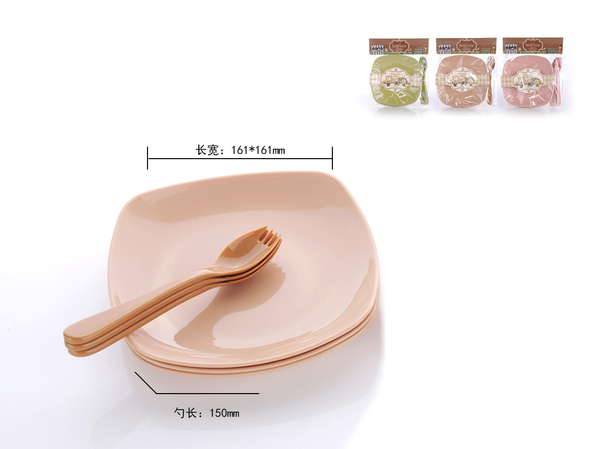 得力熊歐式中號(hào)簡(jiǎn)約正方餐盤(4pcs)( 配4pcs叉匙)
