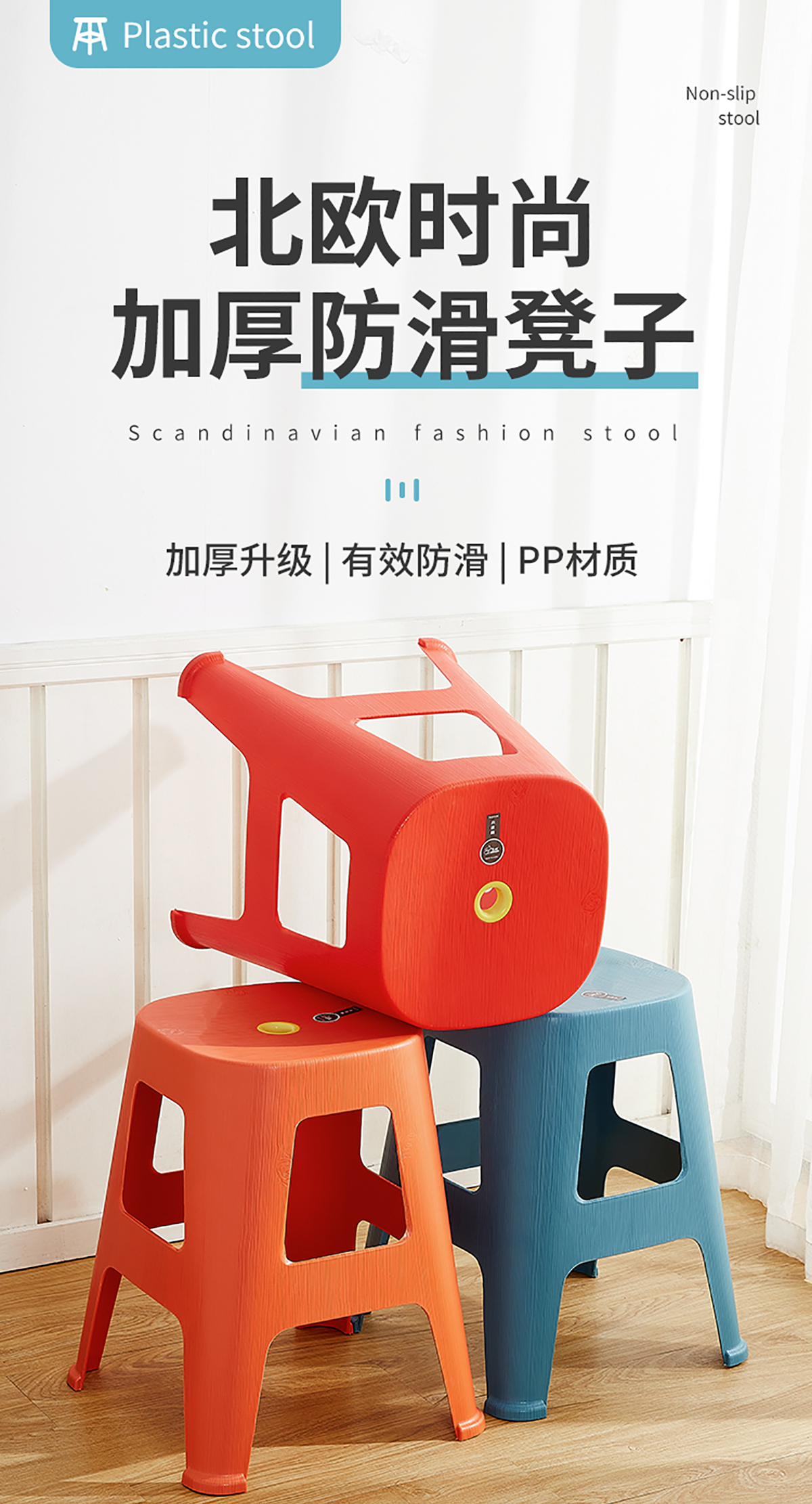 木紋椅(紅色/橙色+藍色)