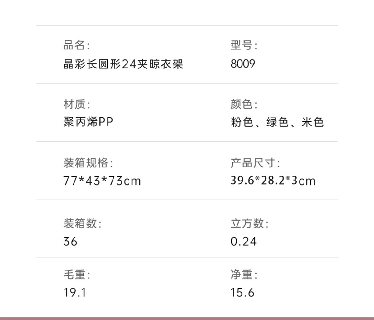晶彩長圓形24夾晾衣架 2023年新色