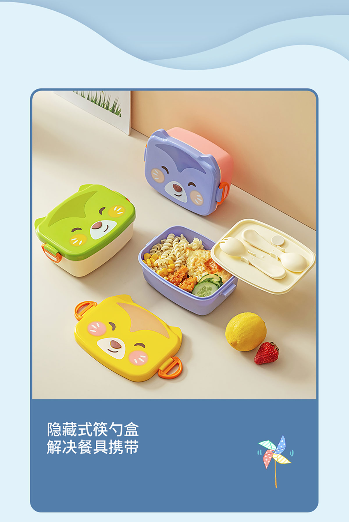 小趣狐/酷鏡熊貓/博學萌鷹長方形便當盒