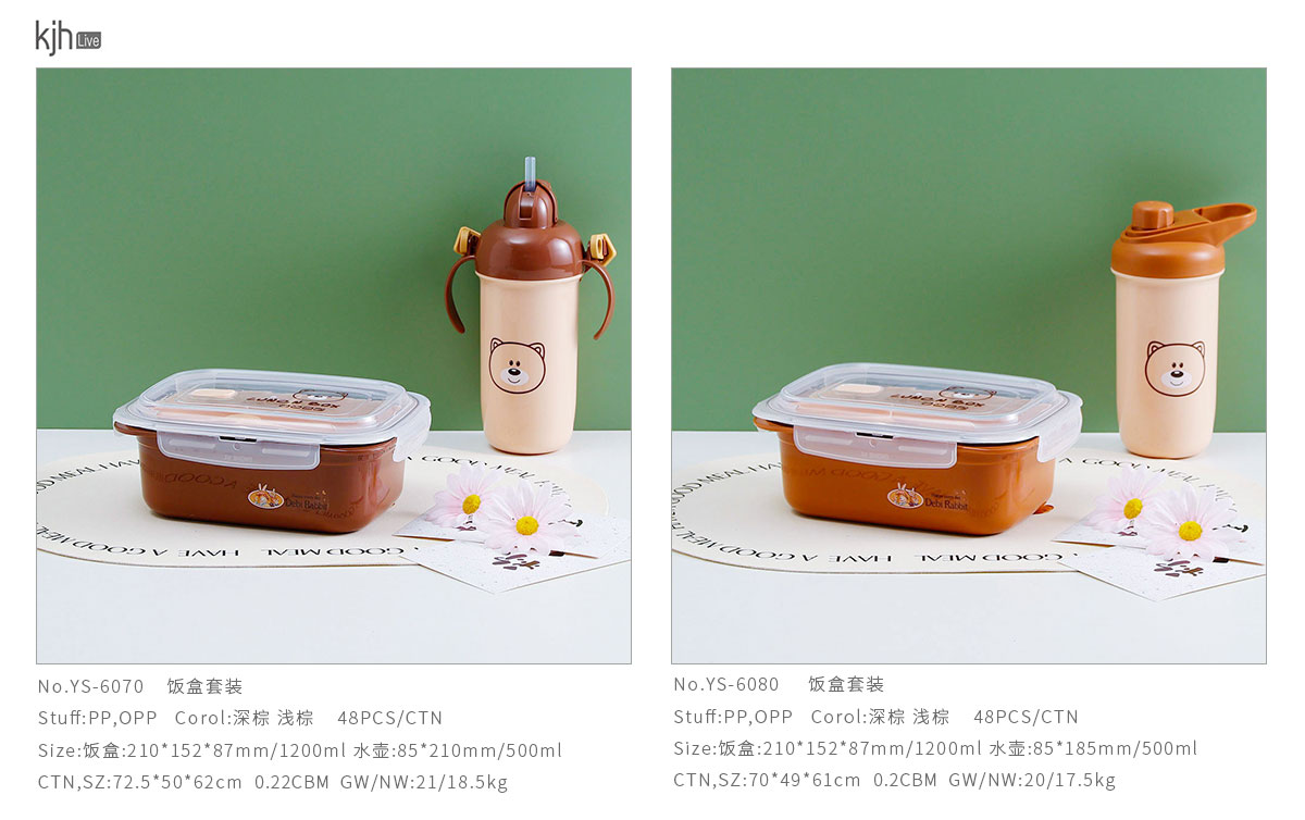 Size: YS-6070:飯盒:210*152*87mm/1200ml 水壺:85*210mm/500ml YS-6080:飯盒:210*152*87mm/1200ml 水壺:85*185mm/500ml