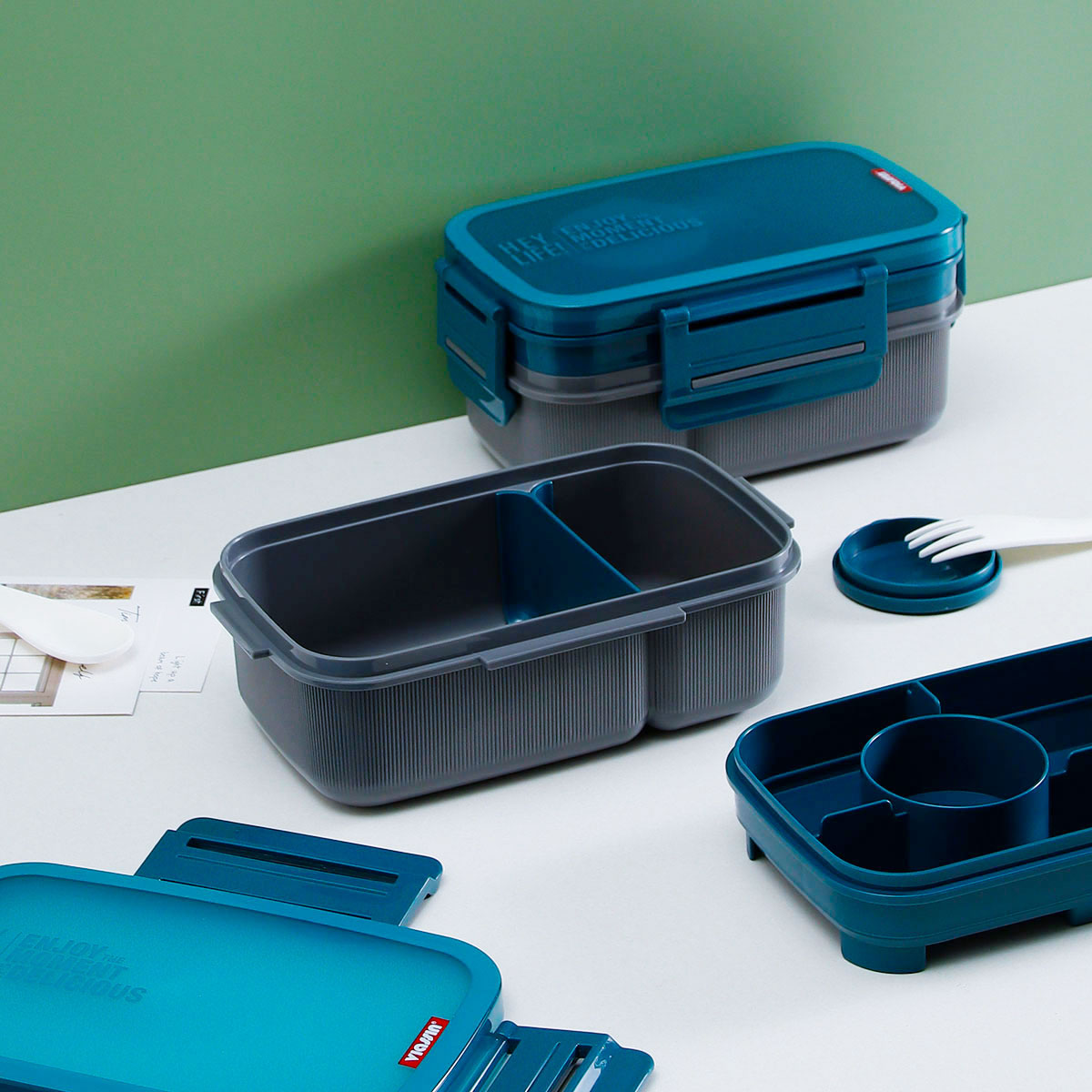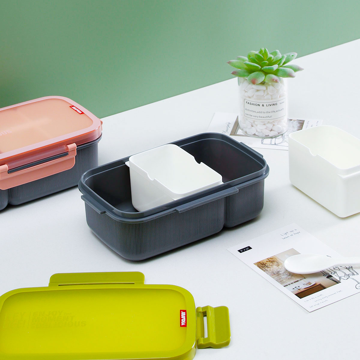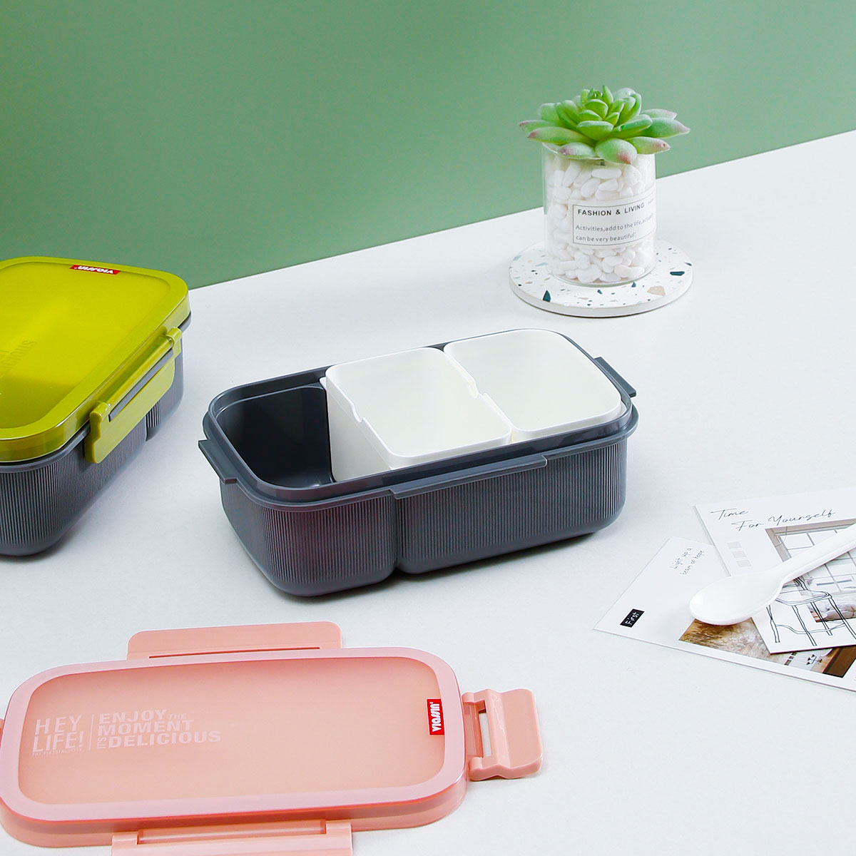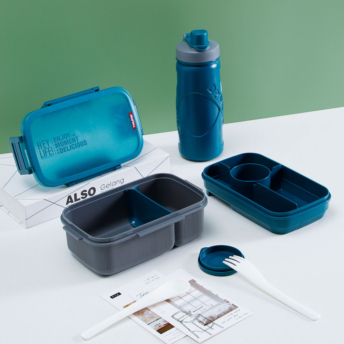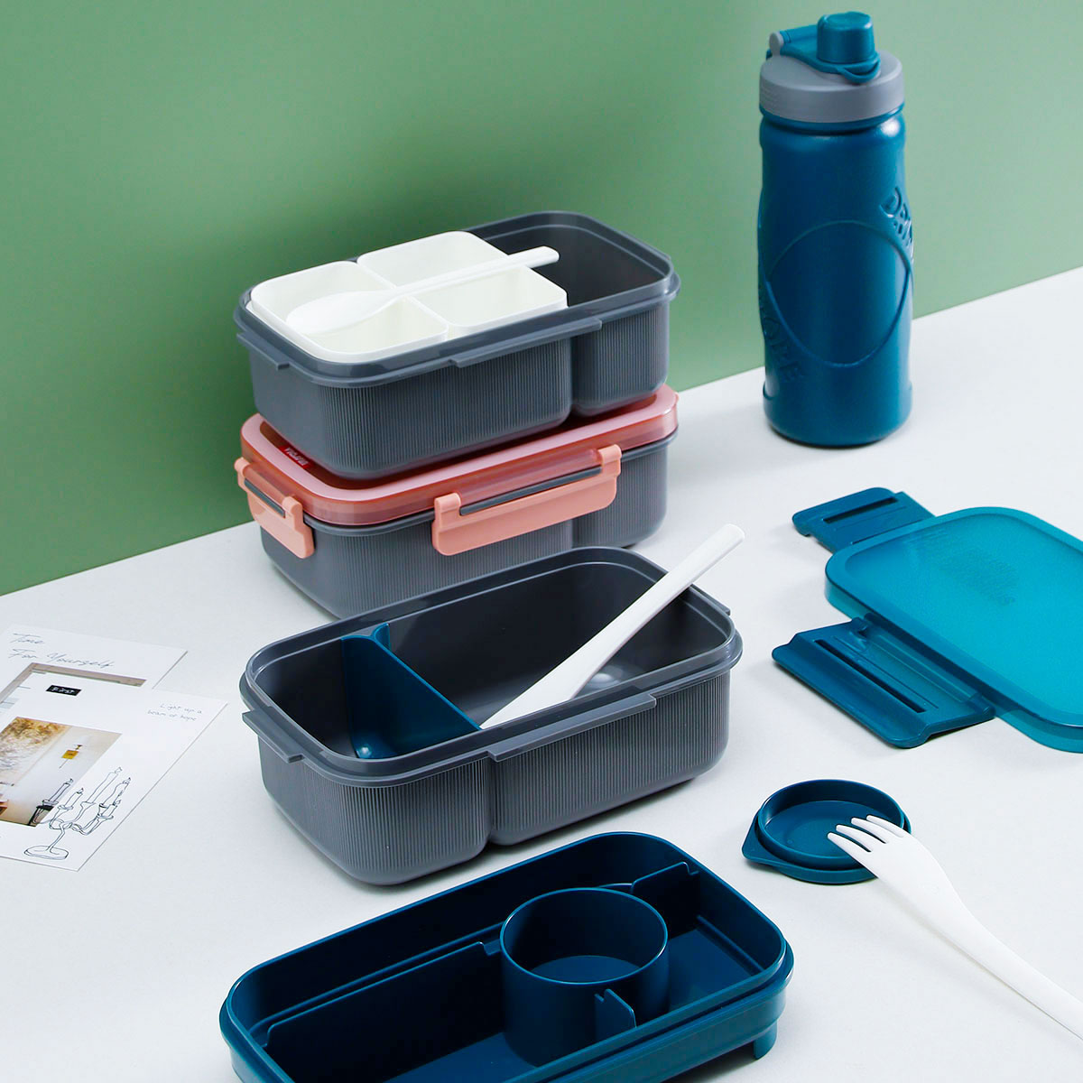 寰彩密封單層3格/雙層6格飯盒(長方高款)+運(yùn)動水壺套裝/單個(gè)
