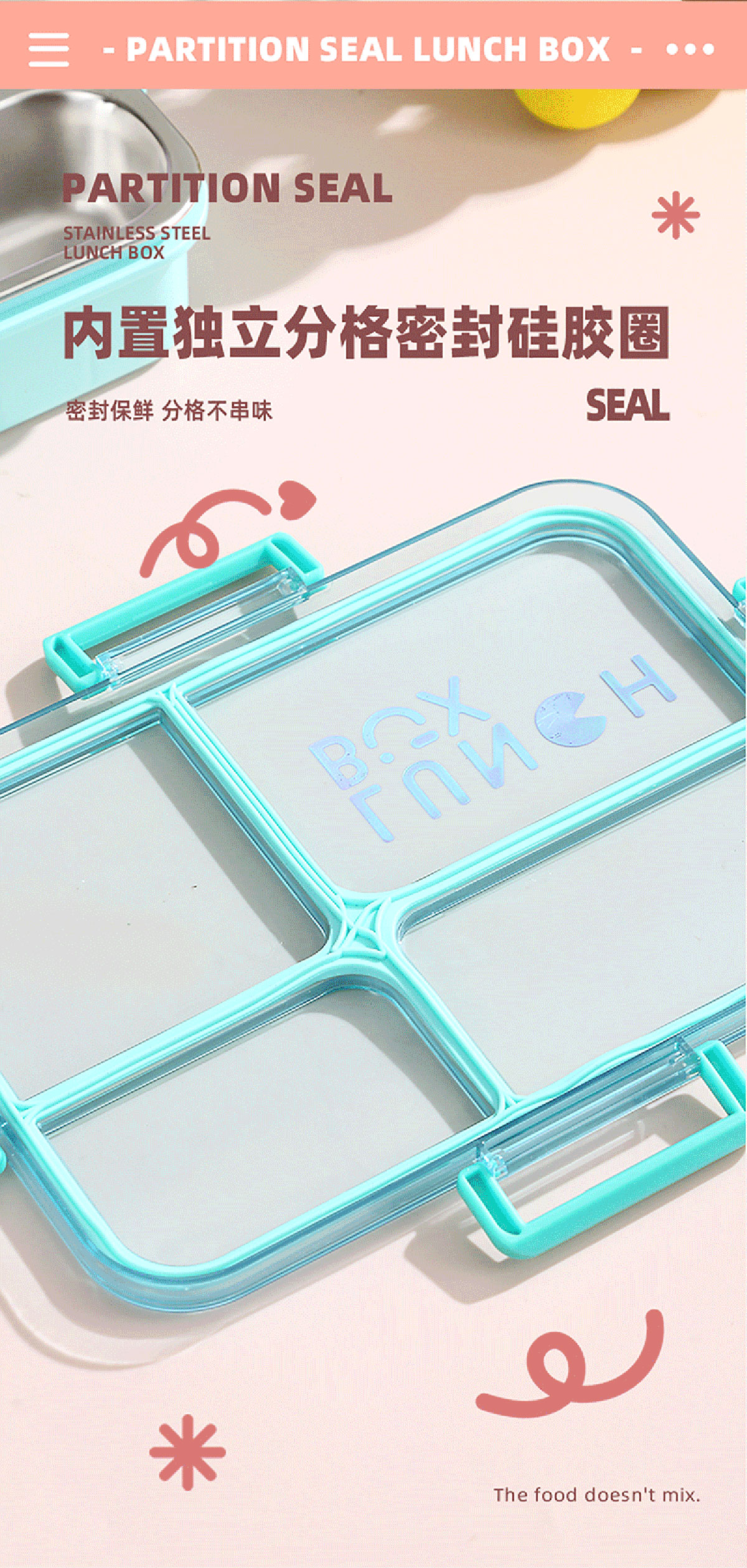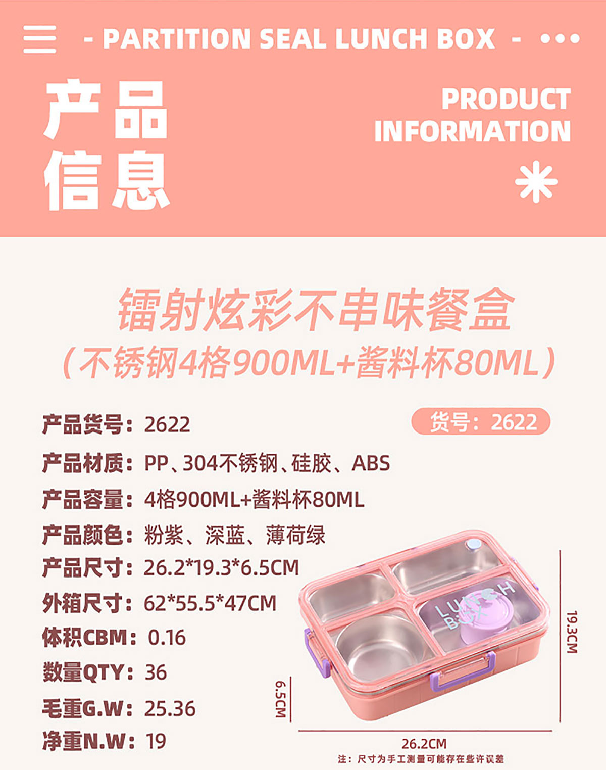 AQX-2622:262*193*65mm/不銹鋼4格900ml+醬料杯80ml
